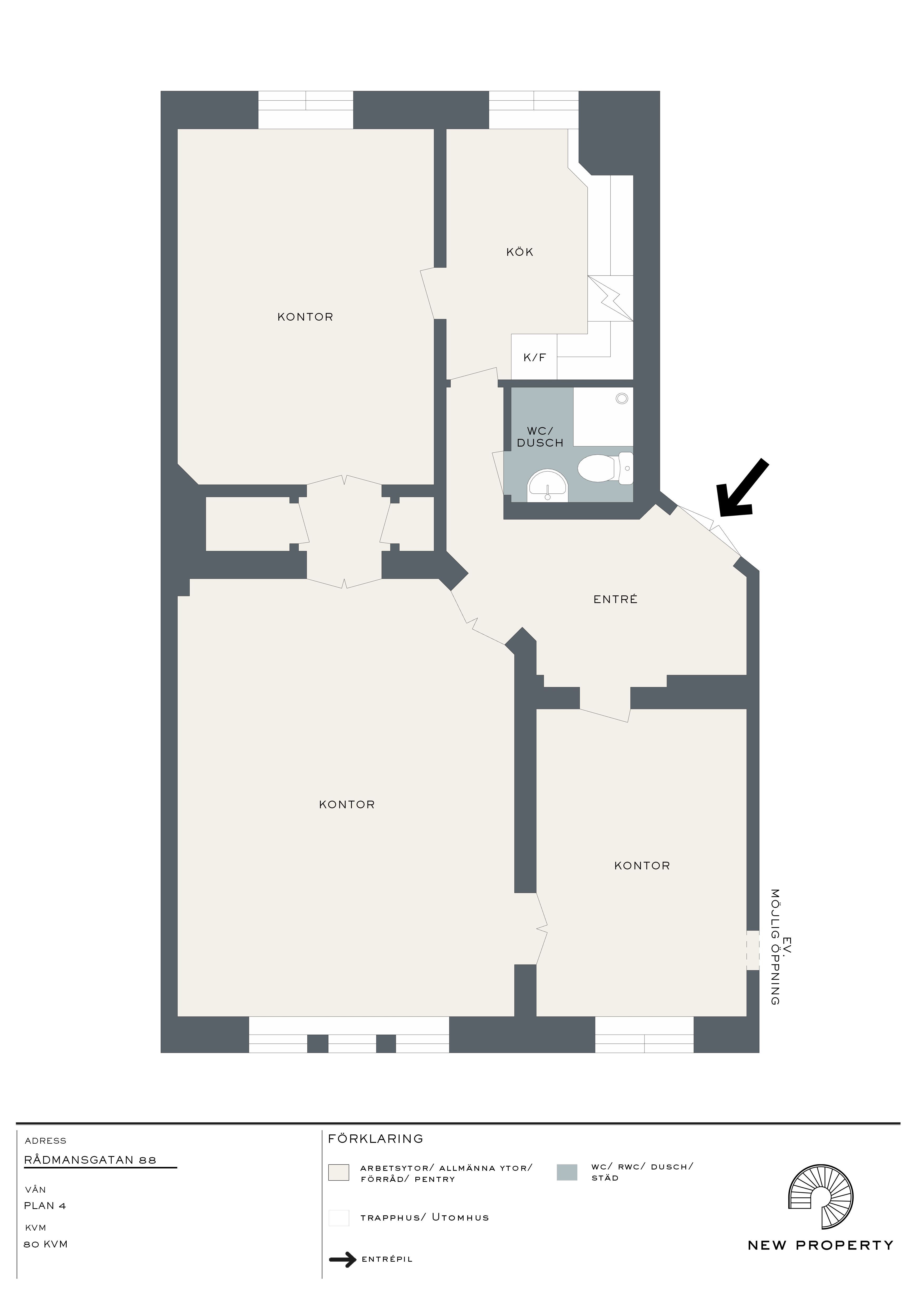 Välkommen till Rådmansgatan 88, där en trevlig och välplanerad kontorslokal på plan 4 om 80 kvm- 134 kvm. Lokalen kan även hyras i ett större utförande om 131 kvm. Lokalen erbjuder tre separata kontorsrum, en representativ entré samt goda möjligheter till både fokuserat arbete och mötesytor. Planlösningen kompletteras av kök/pentry samt WC med dusch, vilket skapar en funktionell och bekväm arbetsmiljö för den mindre verksamheten. Lokalen lämpar sig utmärkt för kontorsbaserad verksamhet och passar exempelvis konsultbolag, byråer eller kreativa företag som söker en lugn och professionell arbetsplats. Fastigheten är belägen i ett av Vasastans mest attraktiva kvarter med närhet till kommunikationer, restauranger, caféer och service. Här finns ett levande affärsområde med god tillgänglighet och ett brett utbud av service. Välkommen på visning!