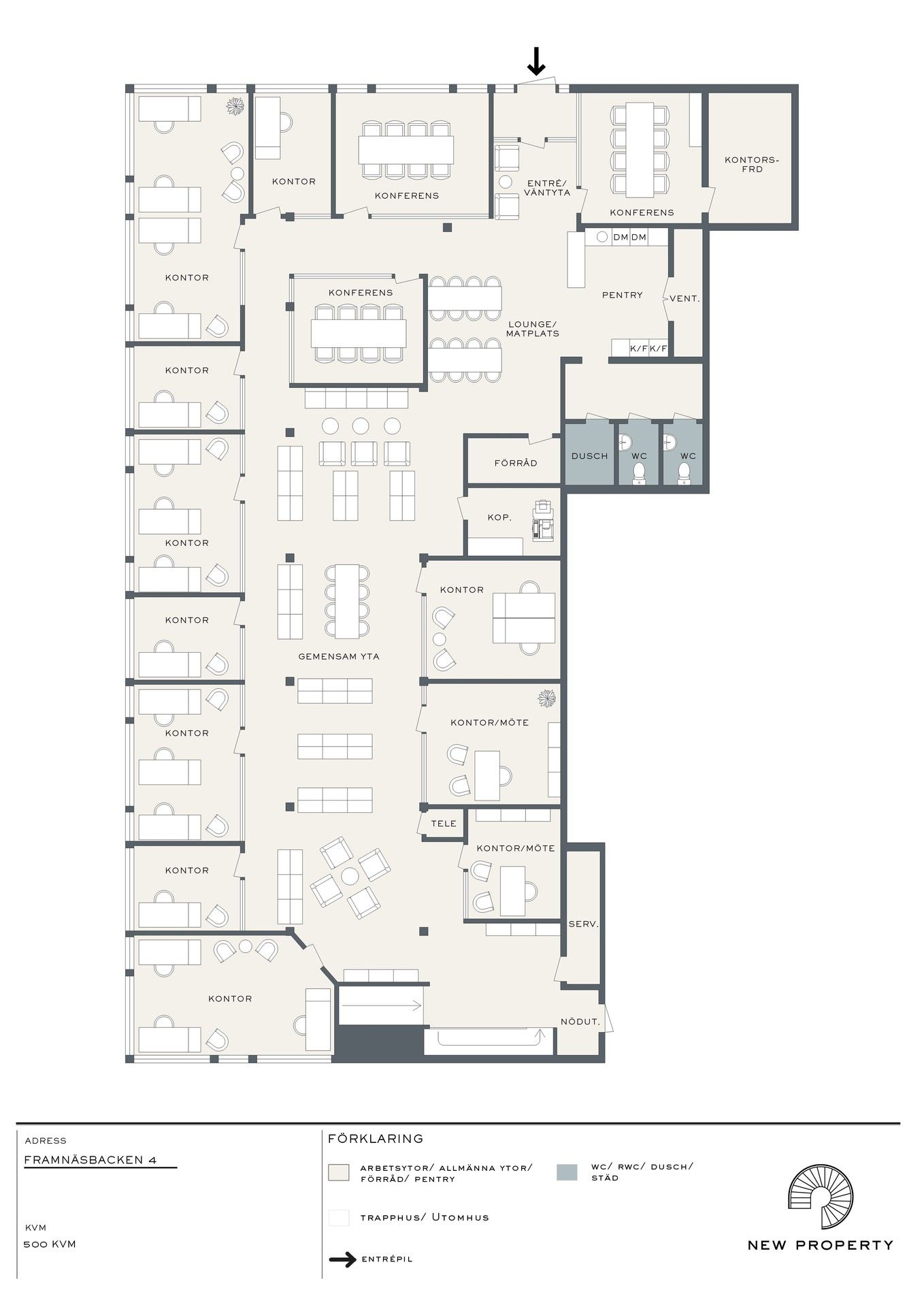 Välplanerad lokal med egen parkering uthyres på nytt avtal. Läget är trivsamt i ett lummigt område mellan Solna Centrum och Solna Business Park. Lokalen fördelar sig på två snarlika plan (438 + 500 kvm) med egna entréer. Per plan ser rumsfördelningen ut som följer; 12 arbetsrum för 1-2 personer och 2 mötesrum för 6- resp 12 personer. Stort pentry med matplats. 3 WC i anslutning till kapprum vid entrén.