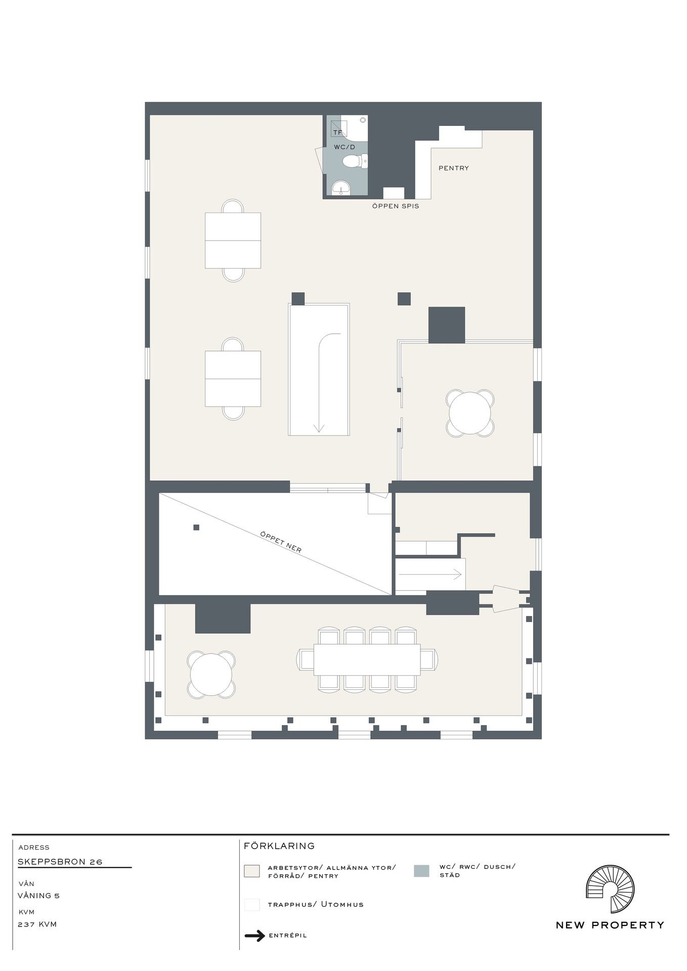 Fantastisk yta med många platsbyggda detaljer. Här sitter man med utsikt mot Strömmen och mitt i arvet från huset byggår 1634 . I den tidigare vinden har man varsamt skapat en lokal där man överallt kan se takkontruktionen från insidan. Lokalen fördelar sig på plan 4 och 5 och har en interntrappa som förbinder planen. Lokalen är sammansatt av två enheter om 160 kvm och 77 kvm med varsin entré. Flexibelt upplägg som kan passa många hyresgäster. Delarna kan även hyras var för sig. Lokalen är ventilerad och ny kyla installeras för tillfället. Ledig nu. Måste ses! Utanför fastigheten finner du Skeppsbron, caféer, restauranger m.m.