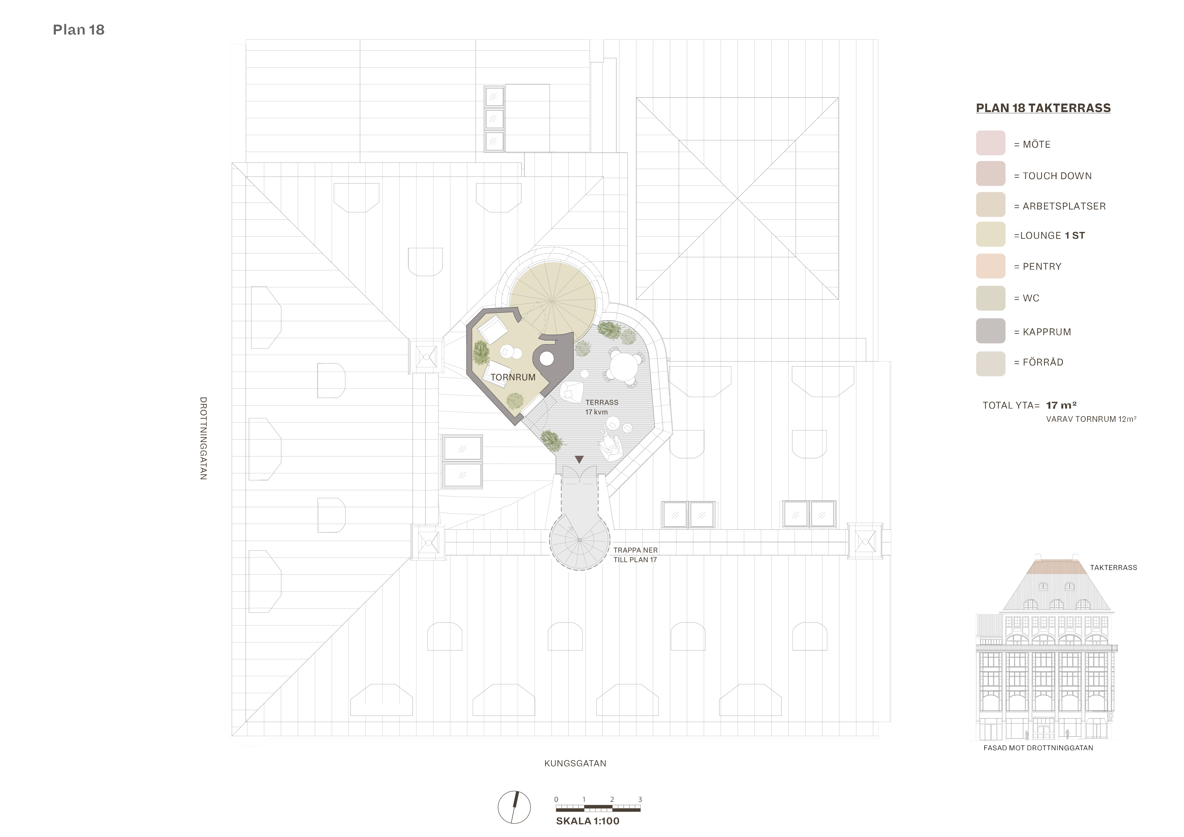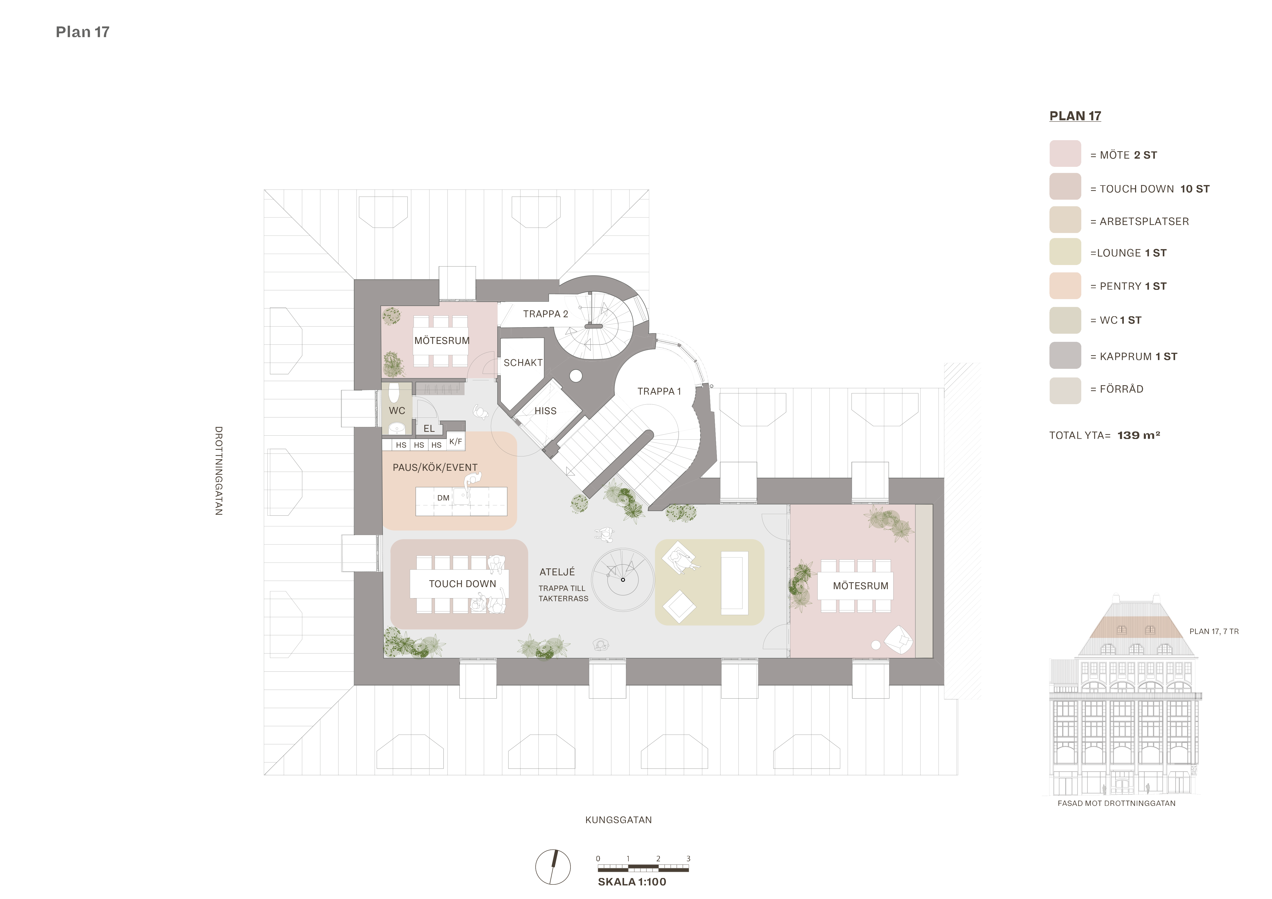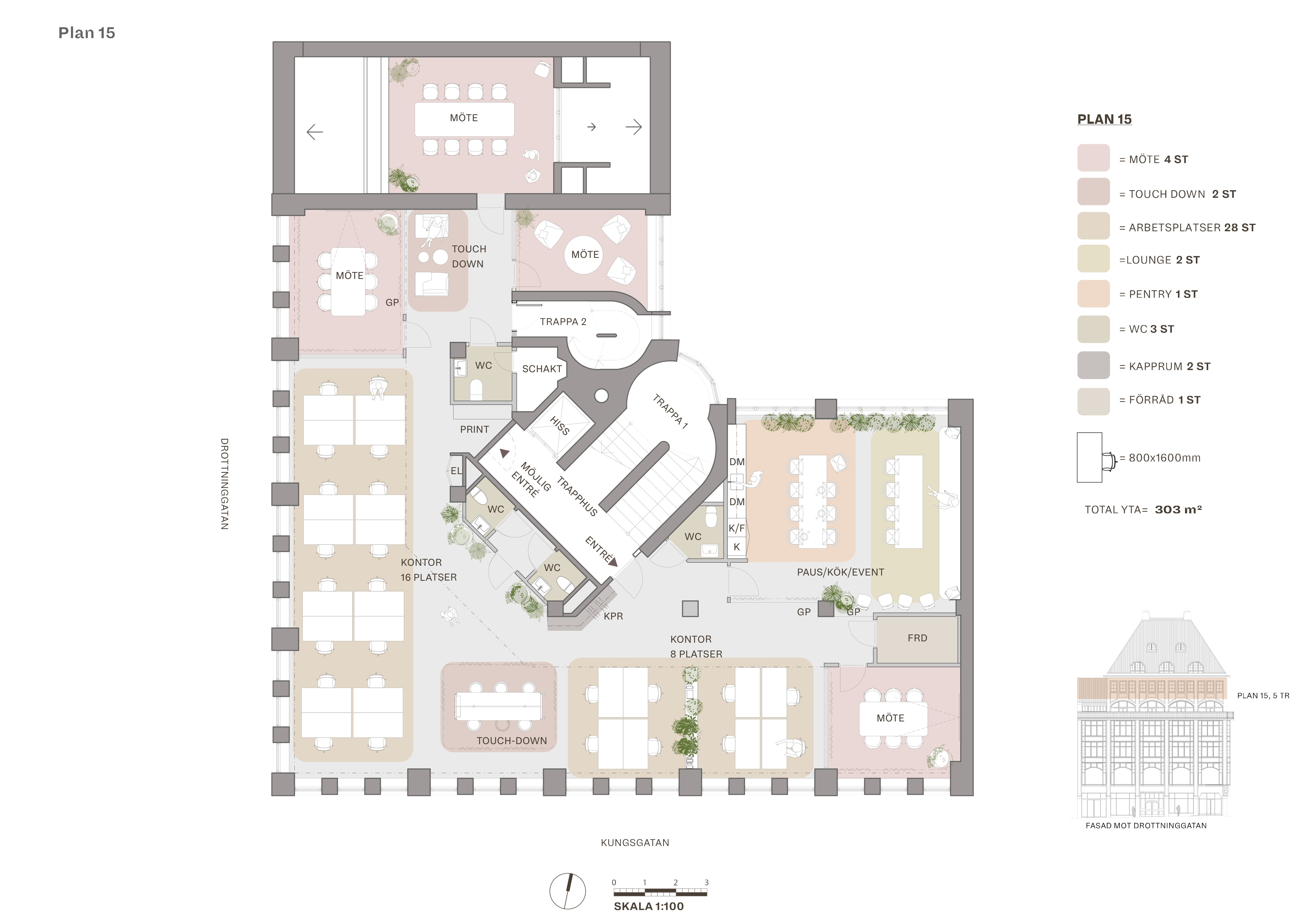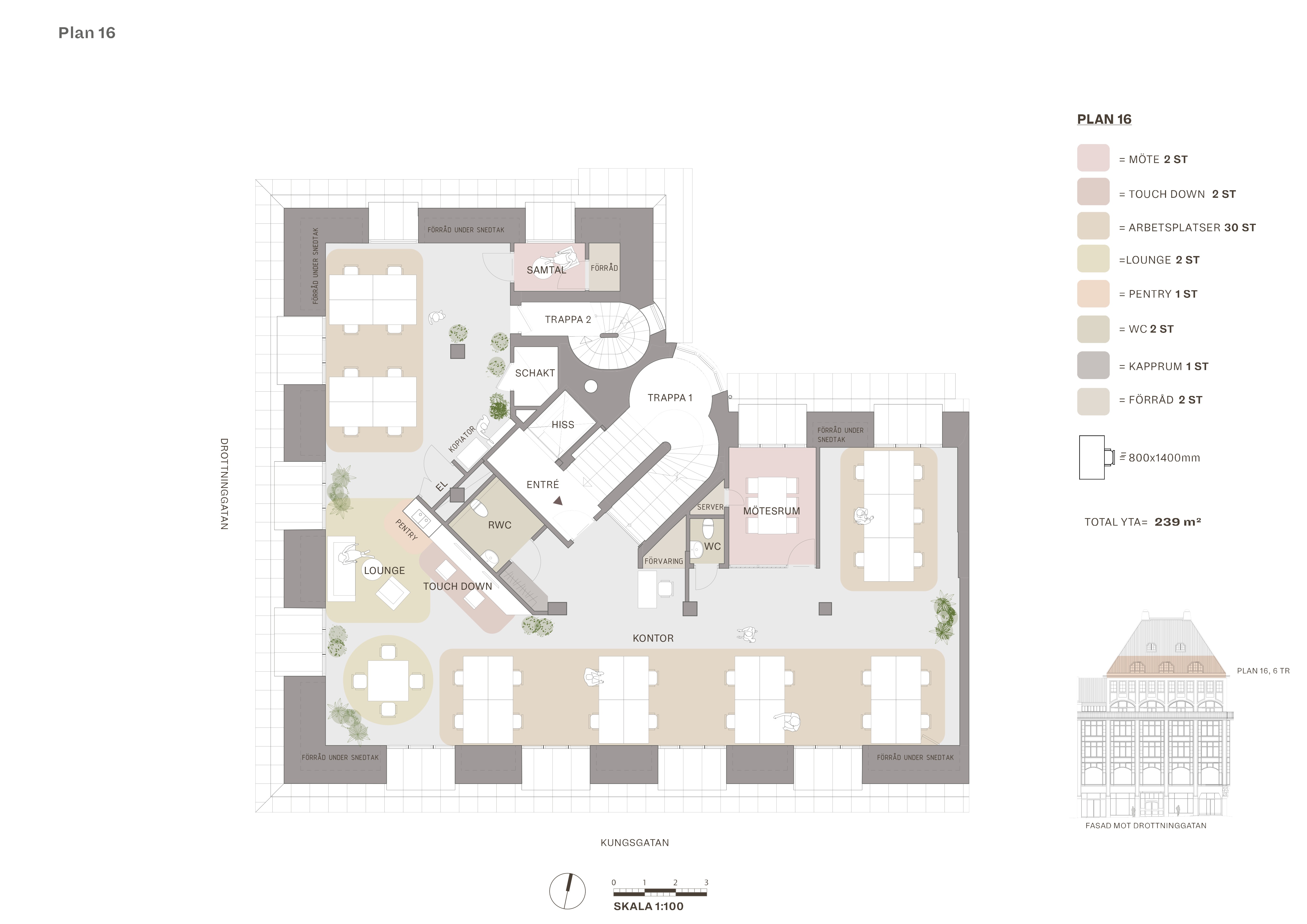 Nu kan du hyra de fyra översta planen i den nyrenoverade fastigheten på Kungsgatan 52. Du disponerar över totalt cirka 698 kvm och har trapphuset för dig själv på alla våningsplanen. Här skapas ett hus i huset med unika kvalitéer med mycket ljusinsläpp, kungsbalkong, terrass och flertalet sociala ytor tillsammans med renodlade mötes- och arbetsytor. Var med och påverka din nya drömlokal i ett av Stockholms mest centrala lägen. Vinkelhaken 9 är en kontors- och affärsfastighet i hörnet av Kungsgatan 52 och Drottninggatan 78. Fastigheten ägs av Axfast sedan 2004 och är blåklassad och omfattar synnerligen höga kulturhistoriska värden. Under 2024 renoveras fastigheten och en ny huvudentré återskapas med ingång från Kungsgatan. Gatuplanet fylls upp med service och får ett nytt modernt uttryck utan att frångå husets byggår och vackra ursprungsdesign. I källarplanet tillskapas cykelparkering och dusch och omklädningsmöjligheter för husets hyresgäster. Fastigheten är miljöcertifierad och innehar BREEAM In-Use Excellent