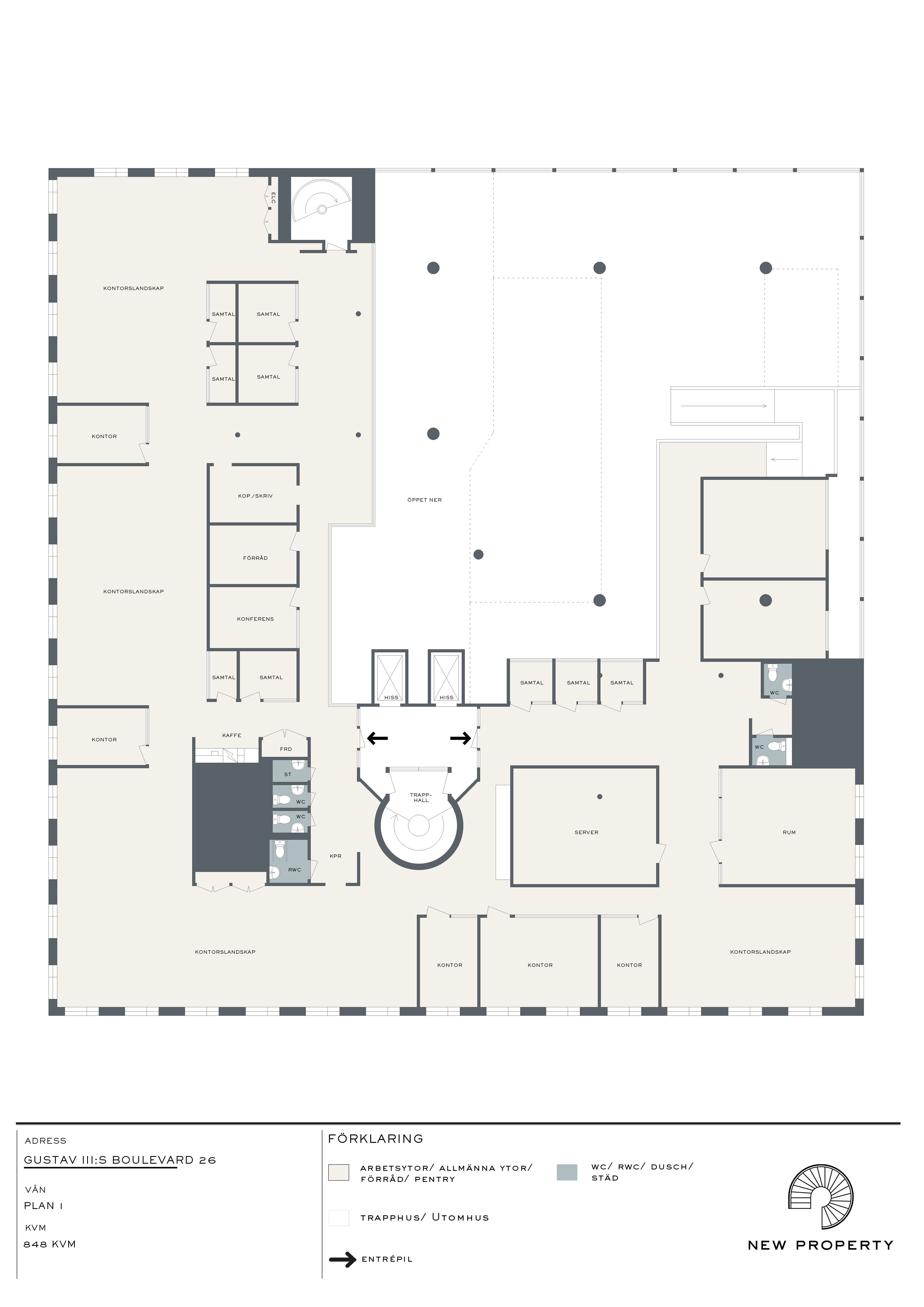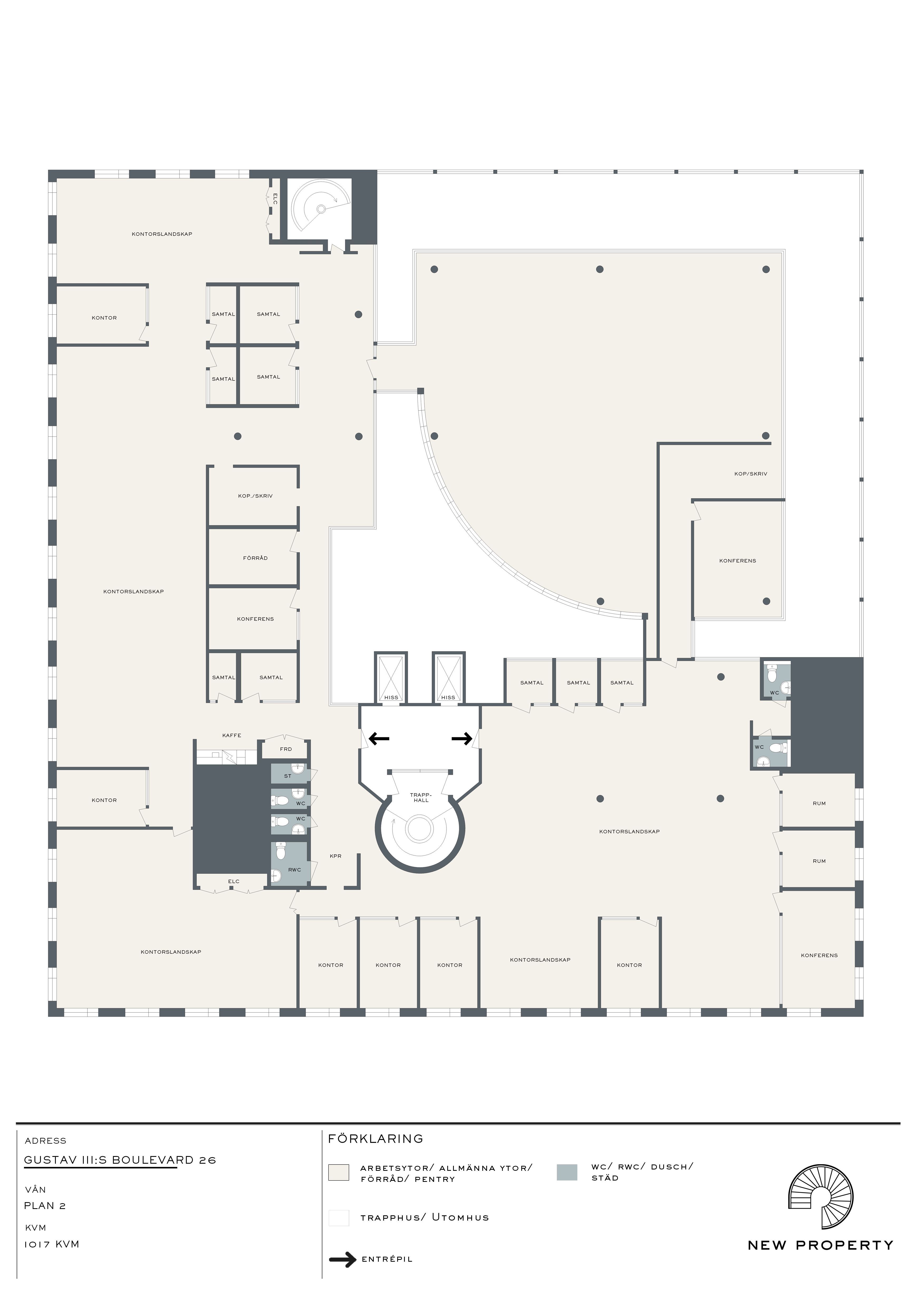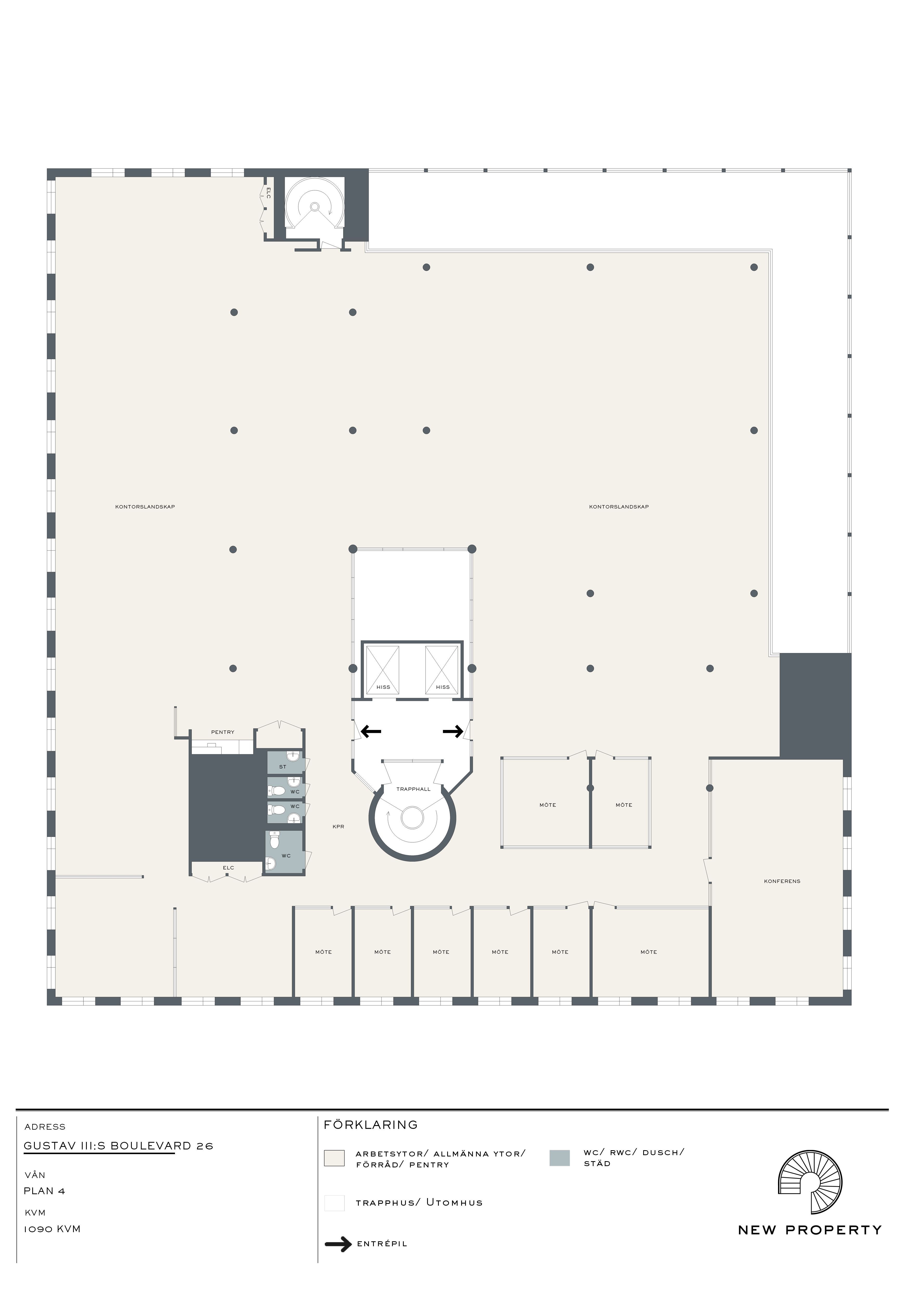 Hyr ett eget kontorshus i fem plan med en välkomnande entré med reception i entréplan med trevlig loungedel för besökande. Här finns konferensrum i varierande storlekar från 6 - 18 personer. Här finns även två stora lastportar för direktinlastning in till lager eller labb med bra takhöjd, ca 4 m Uppåt i huset ligger fyra kontorsplan som kännetecknas av öppenhet, ljus och en fri utsikt i alla väderstreck. Mycket glasväggar även inne i huset som sammanbinder planen på ett trevligt sätt. I mittkärnan ligger trapphuset med dubbla hissar och en generös trappa som går genom hela huset. Här passerar tiotusentals bilar varje dag så skyltläget kan inte bli så mycket bättre. Ett av Stockholms bästa kommunikations läge. 600 m till Solna station. Det är 7 minuter från T-centralen, 4 minuter från Odenplan. Bussar, 15 m till hållplats på Gustav III:s Boulevard och 50 m till hållplats längs E4:an. I huset bredvid ligger restaurangerna K-märkt och Sushi MGL plus Nordic Wellness gym och här finns dessutom ett stort konferenscenter och en takterrass för större event. Ytfördelning BV: 1 250 kvm Plan 1: 848 kvm Plan 2: 1 017 kvm Plan 3: 1 017 kvm Plan 4: 1 090 kvm Total yta kontor: ca 5 222 kvm Omklädning - 2: 71 kvm Förråd - 1: 227 kvm Total yta inkl. förråd: 5 310 kvm Garageplan -1 och -2, med upp till 100 p-platser, även laddplatser. Möjlighet att växa in i ytorna alternativt hyra en mindre yta från ca 1 000 kvm upp till hela huset Ett av Stockholms bästa kommunikations läge. 600 m till Solna station. Det är 7 minuter från T-centralen, 4 minuter från Odenplan. Bussar, 15 m till hållplats på Gustav III:s Boulevard och 50 m till hållplats längs E4:an. Med bil ligger det intill E4:an och i närheten av E18. Det finns dessutom gott om cykelbanor i alla riktningar. Bra access till Arlanda via pendeltåg och flygbussar.