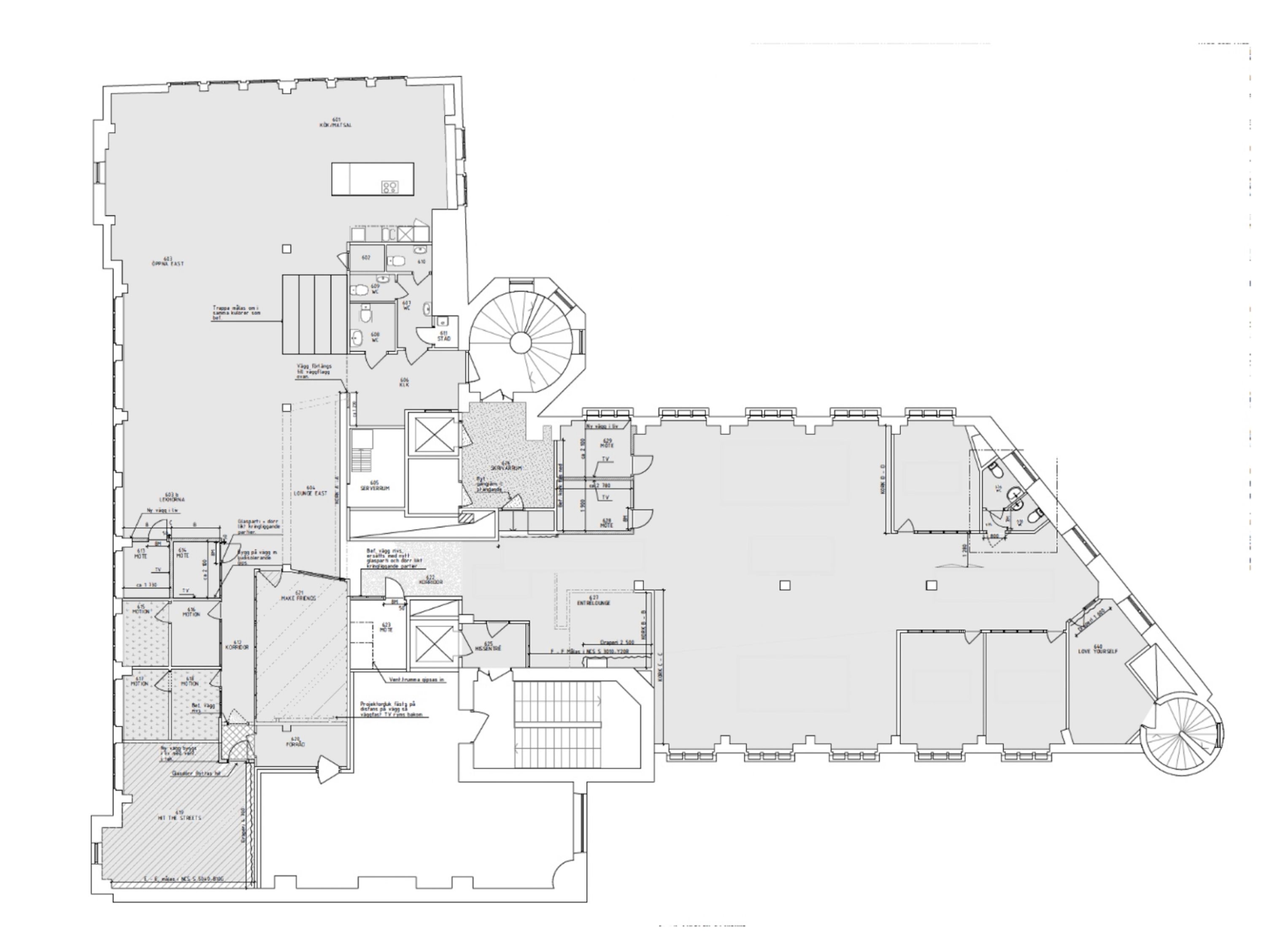 Väl i lokalen möts du av en trevlig mottagningsyta med närhet till ett bra utbud av mötes/konferensrum i varierande storlek. Det finns bra arbetsytor bra smårum som lämpar sig perfekt för telefon/teamsmöten. Lokalen har ett karaktärsfullt snetak, fantastiskt ljusinsläpp från alla fyra väderstreck som skapar en ljus och luftig arbetsmiljö. I bakkant av lokalen finner du det öppna pentryt som även passar bra för touchdown platser, det finns även 5 wcs och en dusch. Lasthiss rakt in i lokalen som går från förråden och lastkajen.