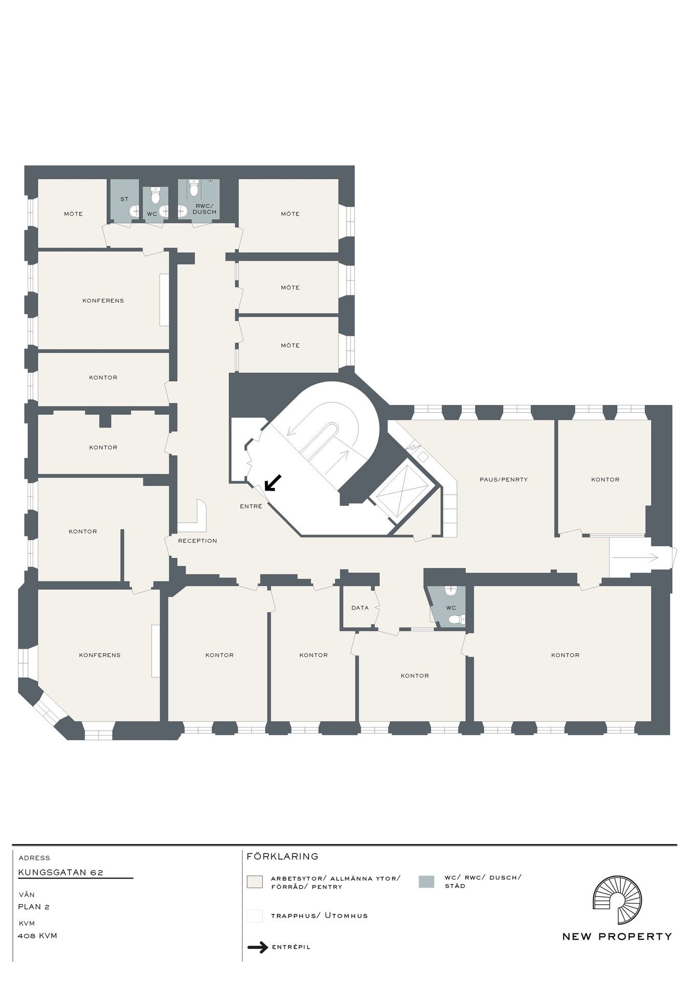 Denna lokal har ett ljust hörnläge mot Kungsgatan och Klara Norra Kyrkogata. Bra mix av mötesrum och arbetsrum i olika storlekar. Ett större rum lämpligt för föreläsningar av olika slag. Kontoret är i gott skick och de tre toaletterna är nyrenoverade. Dusch finns också. Tillträde kan ske flexibelt, lokalens hyresavtal överlåtes utan avgift eller uthyres i andra hand. Hör gärna av dig för visning!