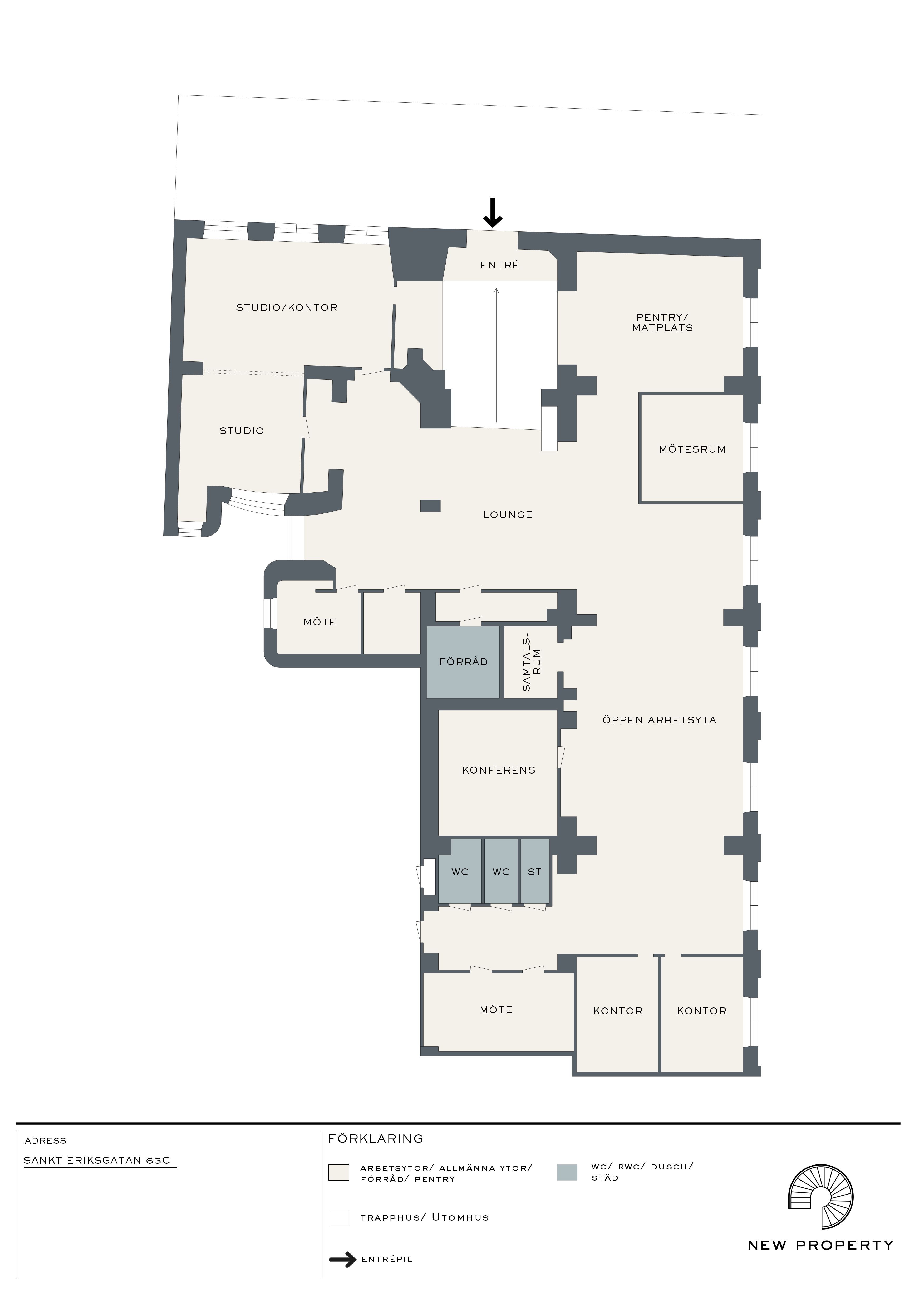 Nu finns möjlighet att hyra en karaktärsfull lokal på en attraktiv adress på Kungsholmen. Lokalen utmärker sig med sin industriella känsla, höga takhöjd och flexibla ytor som lämpar sig för kontor, studio och showroom. Planlösning och karaktär Lokalen på Sankt Eriksgatan 63C har en egen entré från gatan. Interiört präglas ytan av en öppen och luftig känsla, tack vare en generös takhöjd på upp till fem meter och stora fönsterpartier som ger gott om ljus och utsikt mot vattnet. Planlösningen består av ett större öppet landskap, ett flertal mötesrum i varierande storlekar samt en yta som kan användas som studio eller showroom. I lokalen finns ett modernt pentry med plats för sociala ytor. Lokalen håller genomgående en hög standard. Kontrakt till 2026-09-30 alternativt skrivs en ny 3-årigt avtal direkt med fastighetsägaren. Lokalen uthyres med förmånliga villkor. Kontakta mäklaren för mer info gällande hyra & överlåtelseavgift.