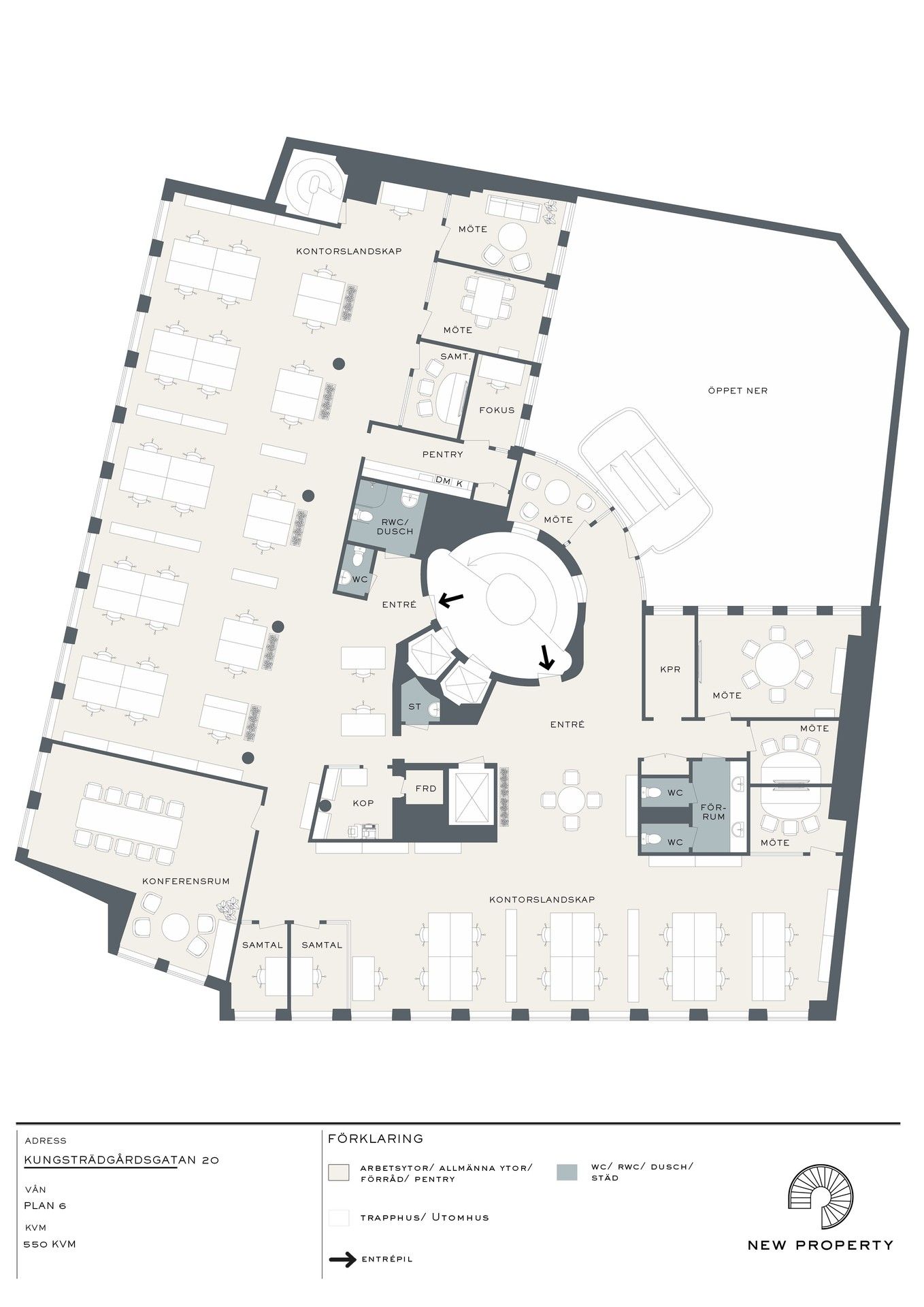 Med ett högt och fritt läge på våning 5 kombineras en representativ adress, stilfull inredning samt välplanerad planlösning. Detta är en idealisk lokal för det företag som söker ett omedelbart tillträde till ett av Citys bästa lägen. • Hörnläge på våning 5 med utsikt över Kungsträdgården och Norrmalmstorg. • Toppläge i Stockholms finanskvarter. • Mycket bra planlösning med både öppna ytor och mötesrum samt möjlighet att dela av lokalen i två enheter. • Stilrent inrett och fint skick för omedelbar inflyttning. Med en yta om 550 kvm erbjuder denna kontorslokal på Kungsträdgårdsgatan 20 en trevlig planlösning som effektivt balanserar öppna ytor med flera avskilda mötesrum. Lokalen är ljust och modernt inredd, vilket minimerar initiala investeringar och möjliggör snabbt tillträde.