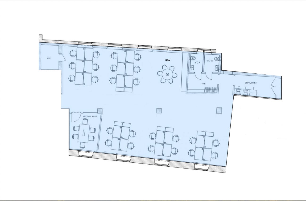 Nu finns denna yteffektiva kontorslokal om ca. 210 kvm. Ytan lämpar sig perfekt för ca. 24 arbetsplatser, trevligt mötesrum och det finns goda möjligheter att vara med och påverka ifall man önskar få till ett större utbud av mötes/konferensrum. Pentryt och ytskikten har precis genomgått en totalt renovering till en hög standard. Lokalen kan hyras under en flexibel avtalstid!